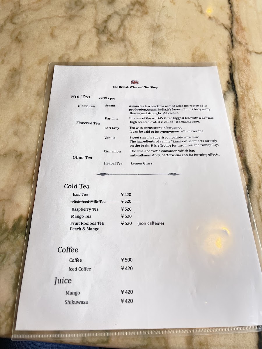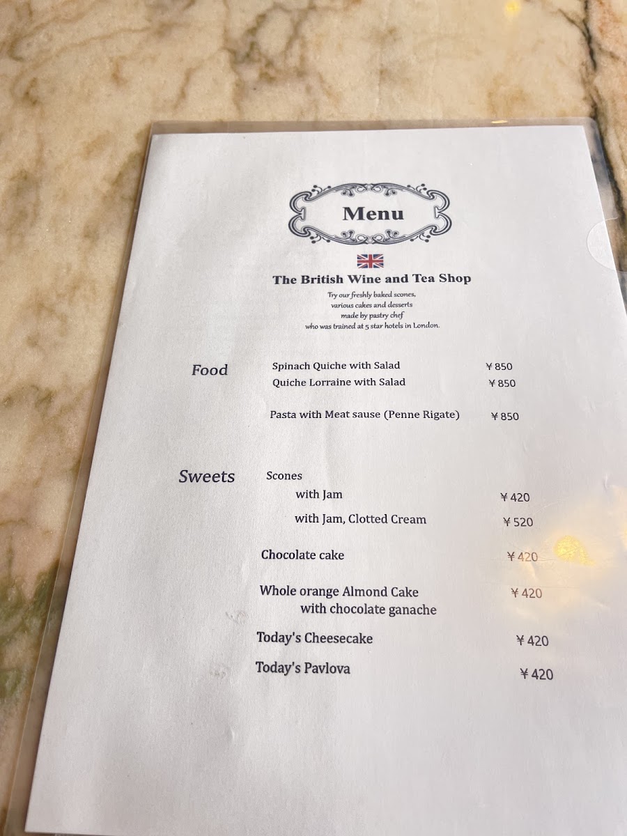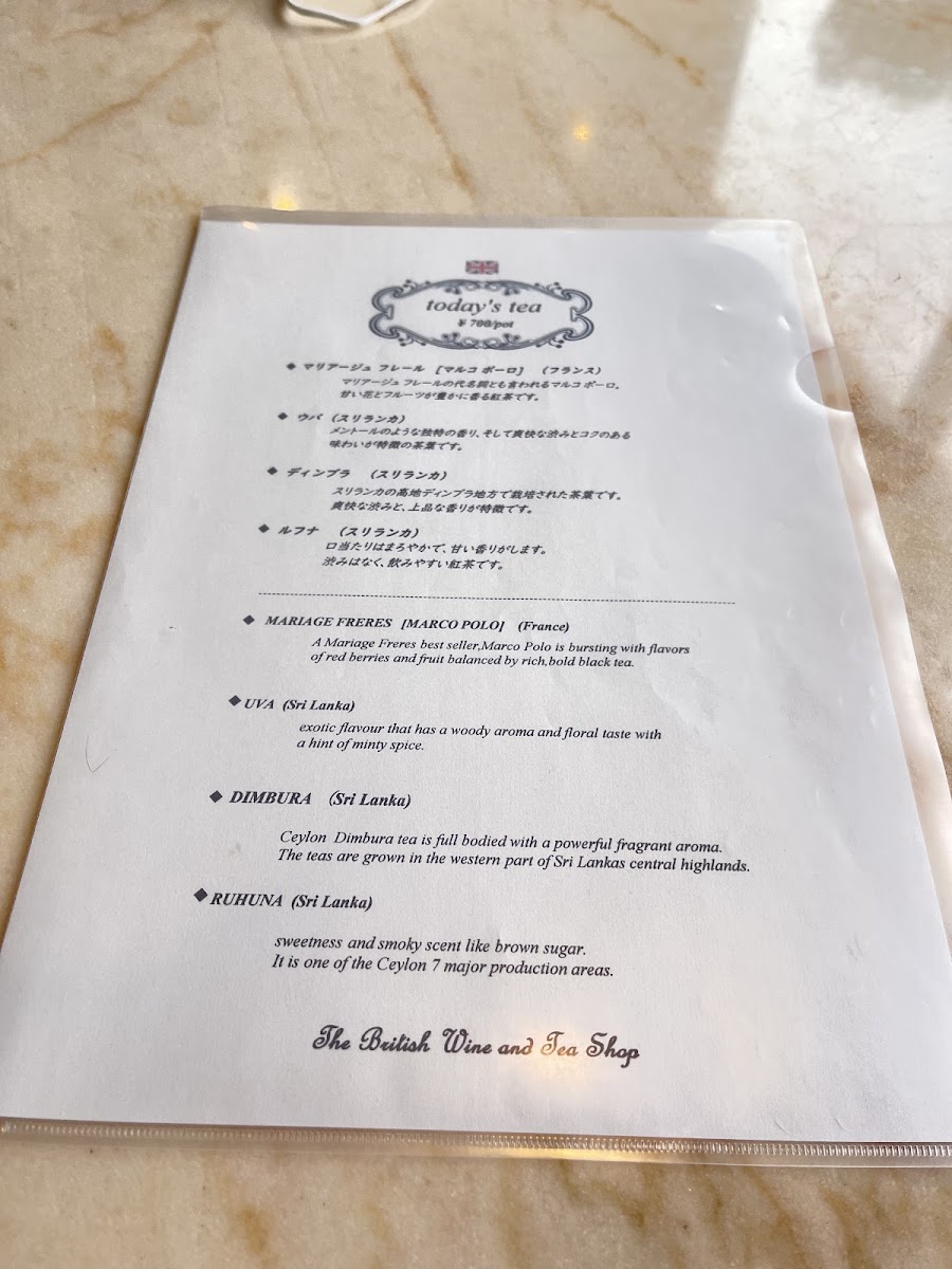 The British Wine and Tea Shop Menu