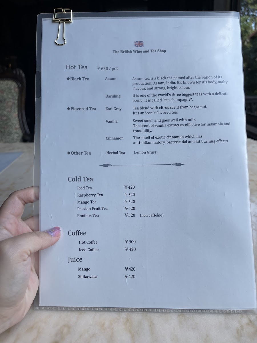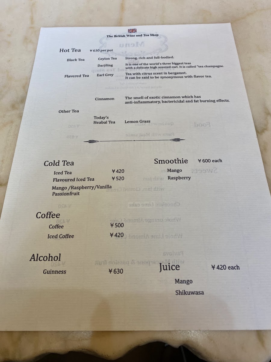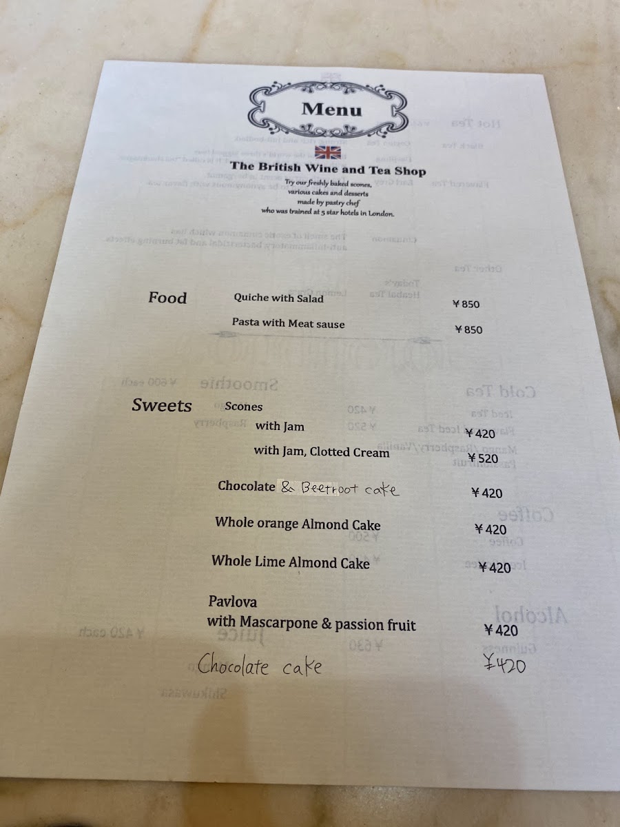 The British Wine and Tea Shop Menu